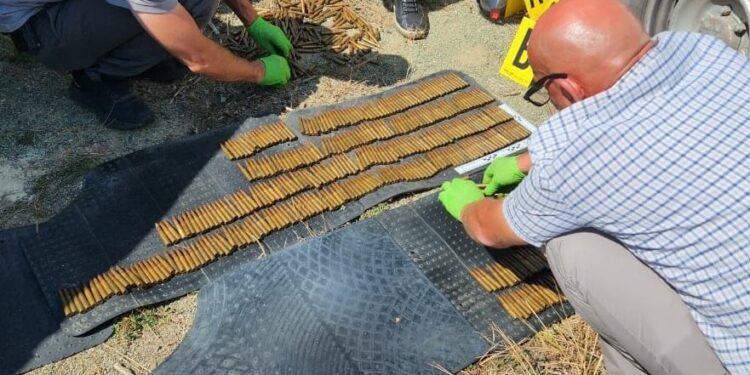 Policia e Kosovës ka brë të ditur se të hënën i ka konfiskuar mbi 1.200 fishekë në fshatin Rudine të Zveçanit.
