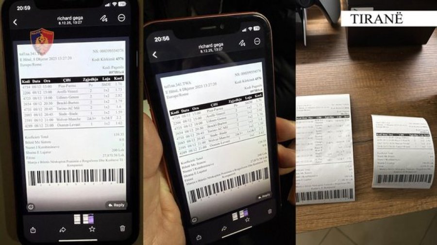 Gjatë kontrollit, u kapën në flagrancë 2 persona duke vënë baste sportive me celularë, mes tyre edhe një i mitur 17-vjeçar, të cilët u proceduan penalisht në gjendje të lirë.