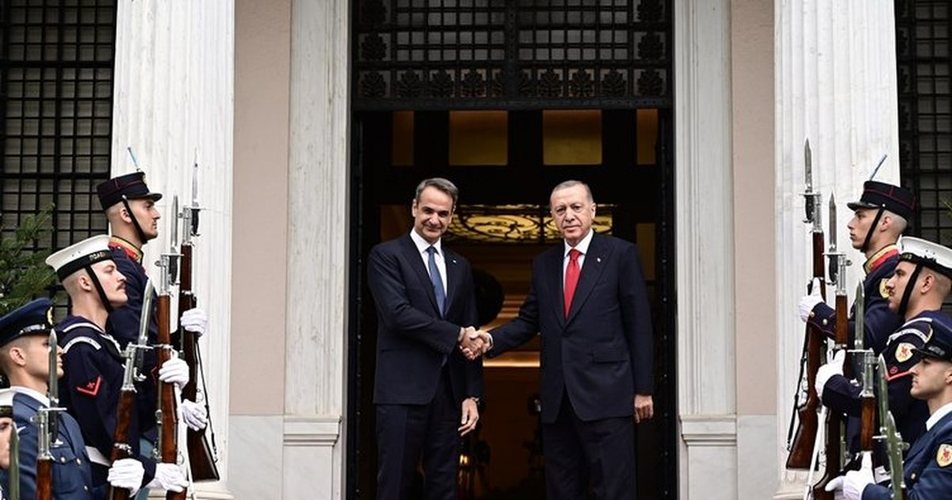 Kreu i shtetit turk u shfaq i buzëqeshur pas 6 vitesh në kryeqytetin grek ku prit fillimisht nga presidentja dhe më pas nga kryeministri i vendit. Mitsotakis tha pas takimit 90 minutësh se vizita ishte një kapitulli i ri në marrëdhëniet mes 2 vendeve.