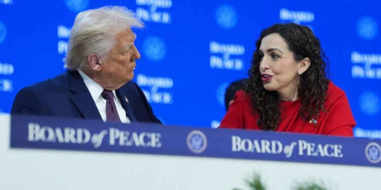 Nga njëra anë, Davosi. Një skenë solemne me 19 krerë shtetesh dhe qeverish nga e gjithë bota, që asistonin krah presidentit Trump në themelimin e Bordit të Paqes. Kamerat nga e gjithë bota fiksonin skenën, e cila ritransmetohej live në TV shqiptare. Në raste të tilla, komentatorët nuk kanë shumë minutazh në dispozicion për të komentuar çdo pjesëmarrës, por njëra tërheq vëmendjen si e vetmja grua në atë asamble prestigjioze: Vjosa Osmani e Republikës së Kosovës.