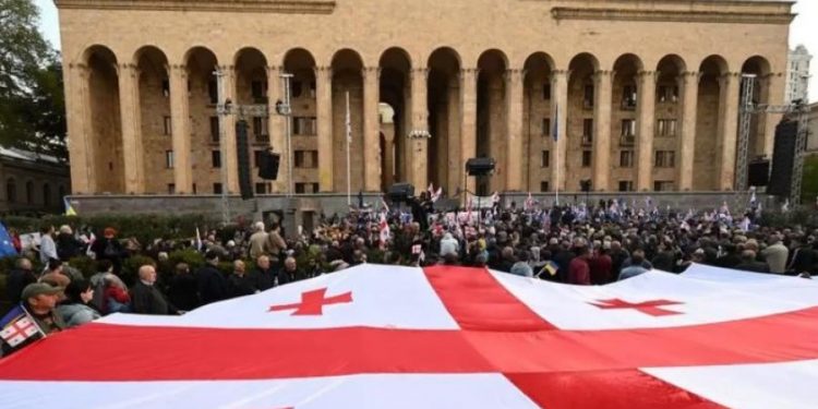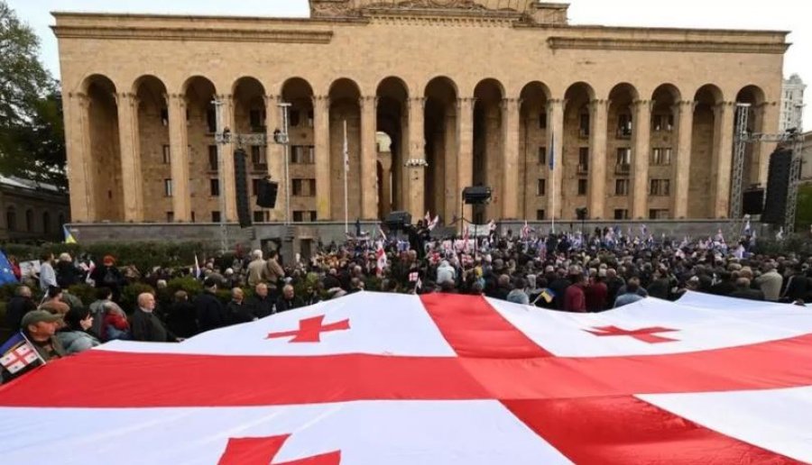 Mijëra protestues u mblodhën jashtë parlamentit të Gjeorgjisë të dielën. Kritikët akuzojnë partinë qeverisëse se është nën ndikimin e Rusisë. Qeveria është akuzuar për burgosjen e kundërshtarëve politikë dhe heshtjen e mediave të pavarura.