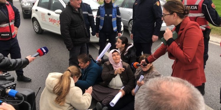 Disa nga banoret kanë bllokuar rrugën dhe kanë refuzuar të ngrihen duke mos reaguar ndaj ndërhyrjes së efektivëve të policisë.