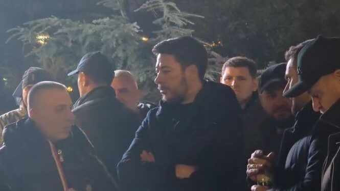 Shkëlzen Berisha është parë i shoqëruar nga deputeti i PD-së, Arjan Ndoja, teksa kanë qëndruar mes mbështetësve të partisë.