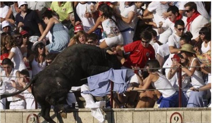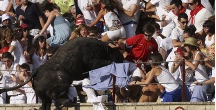 Ky është momenti kur demi të cilin e godisnin me shkopinj druri në Catejon të Spanjës, i vërsulet turmës.