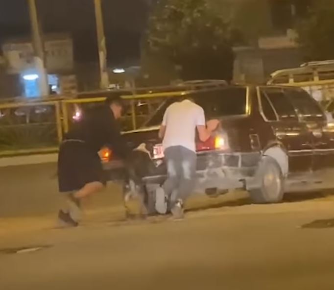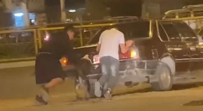 Në rrjetet sociale janë publikuar momente, kur një qen ndihmon njerëzit të ‘shtyjnë’ makinën.