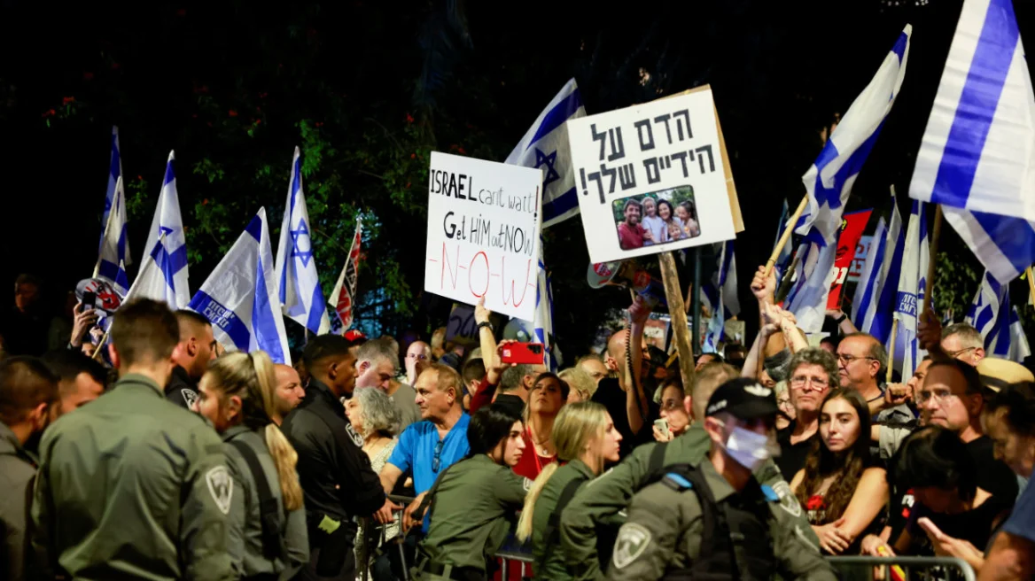 Demonstratat kundër Netanyahut u zhvilluan diku tjetër. Në qendër të Tel Avivit, mijëra njerëz u mblodhën në sheshin e pengjeve, siç njihet tashmë vendi, për të treguar mbështetjen e tyre për familjet e më shumë se 240 pengjeve të marra nga Hamasi.
