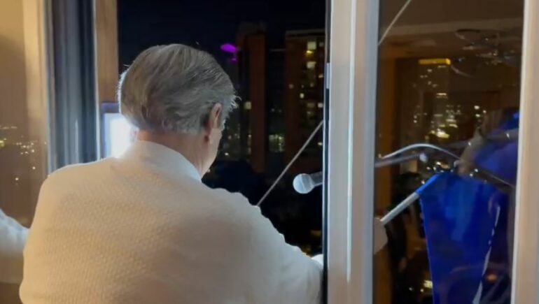 Edhe këtë mbrëmje, ish-kryeministri Sali Berisha ka mbajtur një fjalim nga dritarja e banesës së tij, para mbështetësve që janë grumbulluar poshtë pallatit