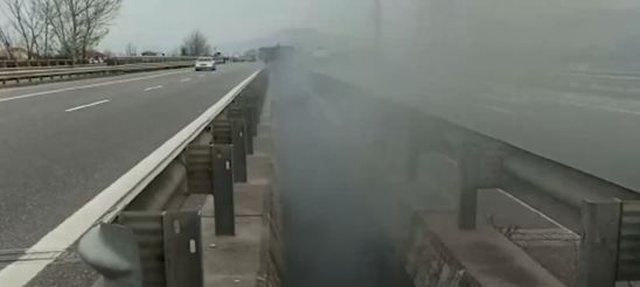 Situata është akoma më e rëndë në një pjesë të autostradës ku shtëllungat e tymit po vështirësojnë lëvizjen e automjeteve.