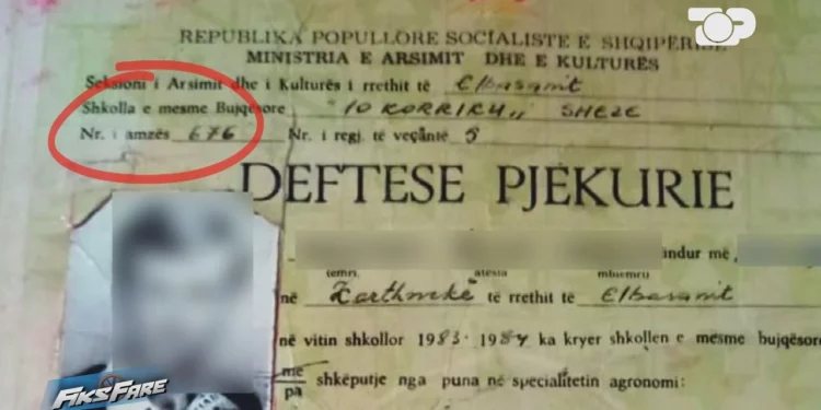 Emisioni Fiks Fare solli rastin e një qytetari nga Elbasani i cili nuk mund të marrë një vërtetim se ka mbaruar shkollën e mesme, sepse regjistri që mban numrin e tij të amzës është grisur.