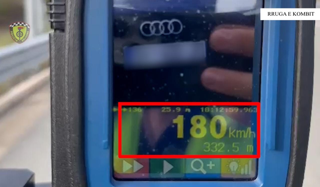 180 km/h në Rrugën e Kombit ku shpejtësia e lejuar është 100 km/h.