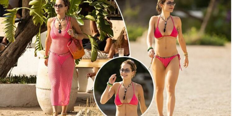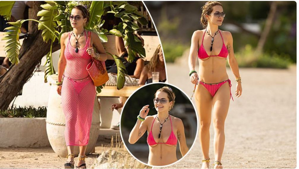 Rita Ora u pa e veshur me bikini ngjyrë rozë të premten, ndërsa mori rreze dielli gjatë një pushimi luksoz në Ibiza. Këngëtarja shfaqi figurën e saj trupore e veshur me bikini në formë trekëndëshi, shkruan DailyMail.
