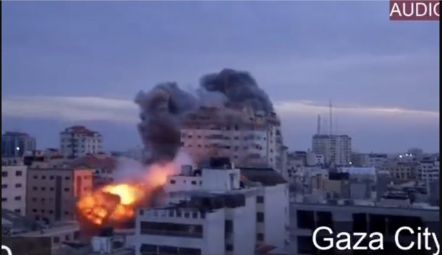 Mediat po qarkullojnë gjithashtu një video të shkatërrimit të kullës së lartë në qendër të Rripit të Gazës.