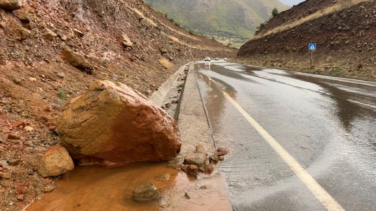Gurë të përmasave të mëdha kanë rënë në rrugë si dhe në kanalet anësore, duke bërë të mundur bllokimin e kanaleve, gjë ka bërë që uji të vërshojë në rrugë.