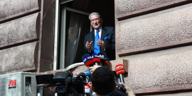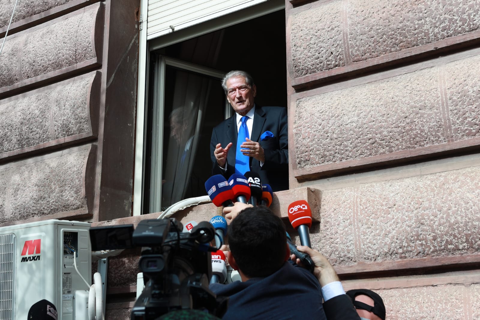 Kryedemokrati Sali Berisha ka mbajtur fjalim nga dritarja e Kryesisë së Kuvendit.