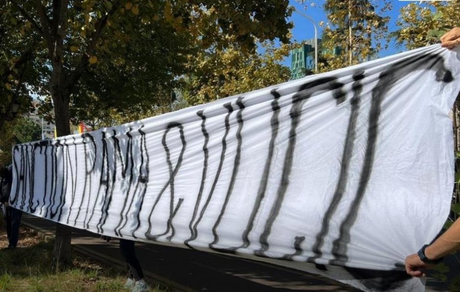 Pak para arrestimit i riu deklaroi për Euronews se fillimisht policët e larguan dhe i kërkuan që të mos e shpaloste banderolën që mbante në dorë, ku shkruhej Sanksiononi Vuçiç dhe Ramën”.