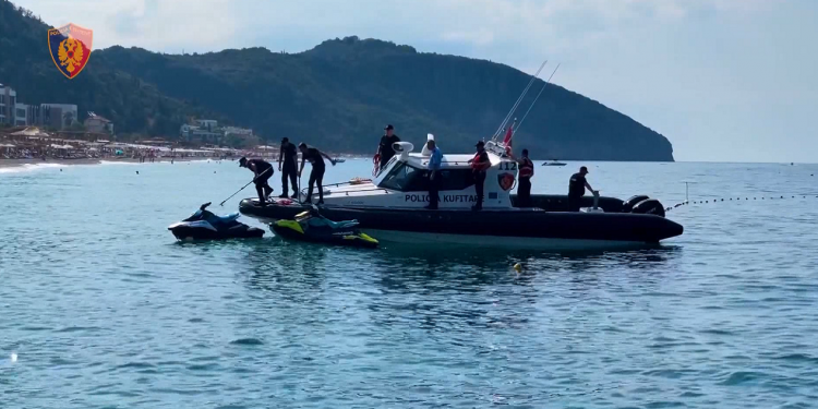Bllokohen në zonën “Shkëmbi i Kavajës” dhe në Dhërmi, 2 mjete lundruese argëtimi “Jet Ski”, drejtuesit e të cilave cenonin sigurinë e pushuesve për shkak se kryenin manovra të rrezikshme, jashtë perimetrit të përcaktuar për këto mjete.
