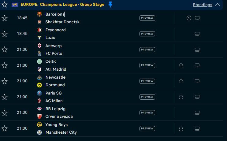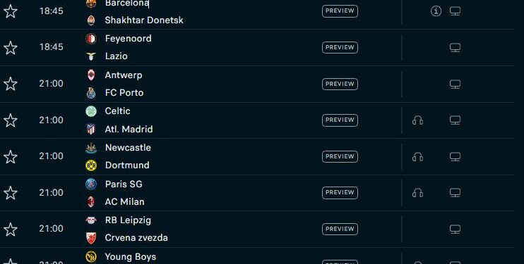 Sfidat nisin që në orën 18:45, me Barcelona-Shakhtar Donetsk dhe Feyenoord-Lazio.