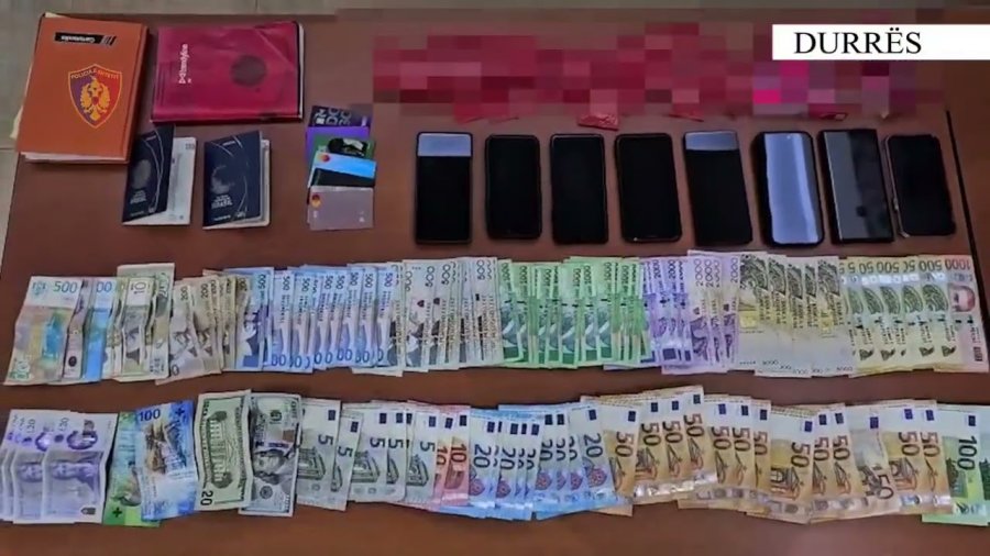 Në cilësinë e provës materiale u sekuestruan gjithsej 1 080 euro, 116 700 lekë, 120 dollarë amerikanë, 80 paund britanikë, 150 franga dhe 3 430 dinarë, si dhe dy pasaporta të shtetaseve të huaja, 8 aparate celularë, karta telefoni dhe blloqe shënimesh.