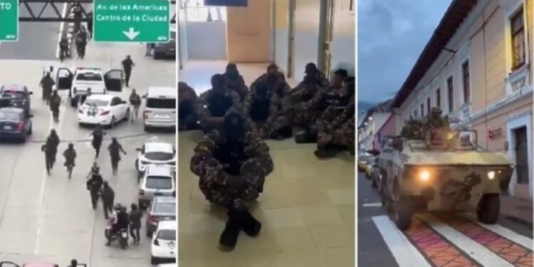Persona të maskuar dhe të armatosur u futën në studion televizive të kanalit TC në qytetin e Guajakilit gjatë një transmetimi live. Policia arrestoi 13 persona pas sulmit, kurse dy punonjës u plagosën.