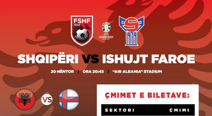 Ka nisur shitja e biletave për ndeshjen midis Shqipërisë dhe Ishujve Faroe që do të luhet më 20 nëntor 2023, për kualifikueset e Europianit Germany 2024.