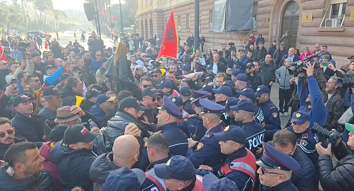 Protesta ka nisur me tensione pasi policia është përplasur fizikisht me protestuesit duke i shtyrë pasi tentuan që të afrohen në godinën e Kryesisë së Kuvendit.
