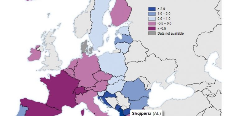 Sipas një harte të publikuar nga Eurostat, kjo është shuma më e madhe në Europë në raport me madhësinë përkatëse të vendit, duke arritur në 6.7% të prodhimit të Brendshëm bruto (PBB). Mali i Zi merr 6.1% të PBB-së, ndërsa mungojnë të dhënat për Kosovën.