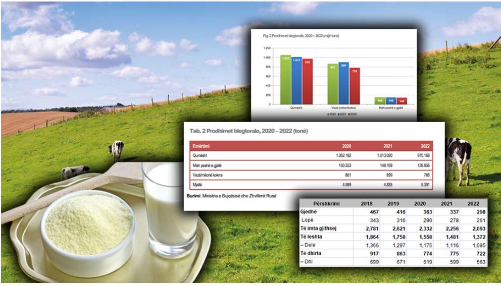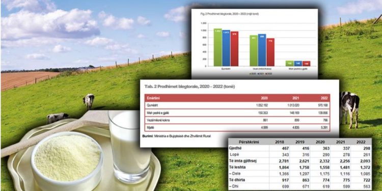 Sipas të dhënave nëse në vitin 2020 dhe 2021 prodhimi i qumështit kalonte mbi 1 mijë tonë, vjet u regjistrua një rënie e shpejtë me një rënie prej rreth 43 mijë tonë më pak nga viti në vit.
