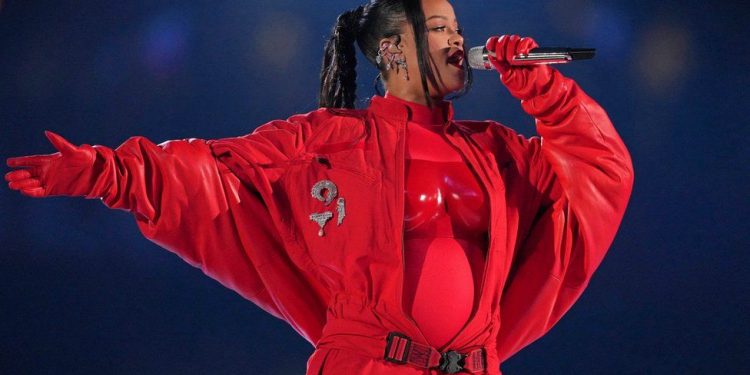 Më konkretisht, në fillim të spektaklit, shohim kamerën duke e zmadhuar Rihannën, me butësi duke e përkëdhelur barkun e saj të fryrë, duke u treguar miliona shikuesve që po e ndiqnin se së shpejti ajo do të ketë një tjetër fëmijë.