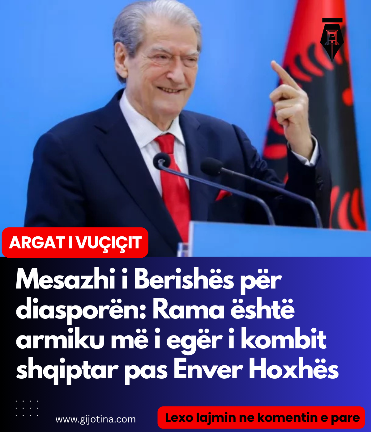Dje tha se shpata e drejtësisë është në zyrën time, ta kuptojnë mirë partnerët tanë se çfarë drejtësie ka Shqipëria. Ai është famzi, me ato që bën me Lubi Ballukun si te legjenda, ata shkojnë si binom hajdutësh të cilët i garantoj se së shpejti do marrin atë që meritojnë nga qytetarët shqiptarë”, tha Berisha.