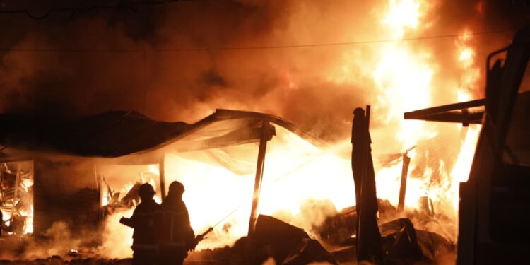 Prej më shumë se 1 orë, 60 efektivë dhe 11 mjete të shërbimit zjarrfikës po përpiqen të shuajnë flakët masive që kanë përfshirë disa magazina të tregut të rrobave të përdorura në lagjen 5 maji në Tiranë.