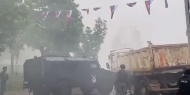 Një automjet i blinduar i Njësisë Speciale ka goditur kamionin-barrikadë në Leposaviq, për ta larguar nga rruga ku ishte vendosur.