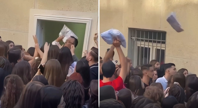 Pas skandalit të parë ku shfaqen pamjet e shpërndarjes së çelësave të dhomave në konvikt, këtë rradhë, në focus është mënyra se si shpërndahen bluzat e bardha te studentët e vitit të parë.