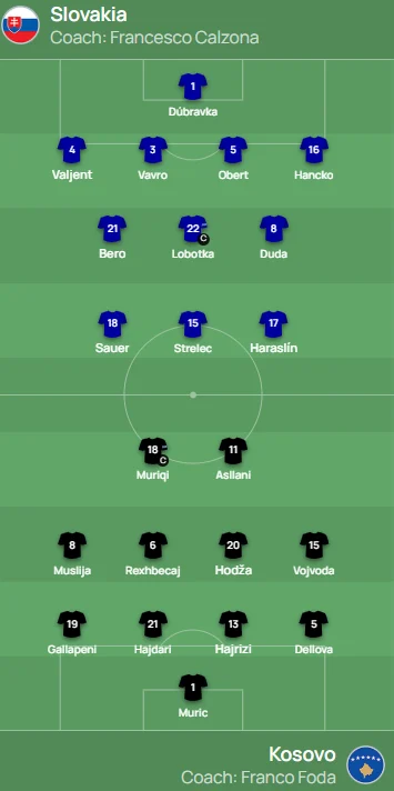 Në portë do të jetë Muriç, ndërsa mbrojtja përbëhet nga Dellova, Hajrizi, Hajdari dhe Gallapeni. Në mesfushë Hoxha dhe Rexhbecaj, do të mbështeten nga krahët Vojvoda dhe Muslija, ndërsa në krye të sulmit do të luajnë Asllani dhe Muriqi.