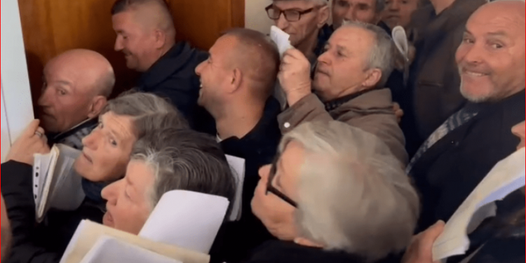 Dhjetëra fermerë po qëndrojnë në rradhë pranë zyrave të te Drejtorisë së Bujqësisë, në pritje për të dorëzuar dokumentacionin e nevojshëm për përfitimin e naftës.