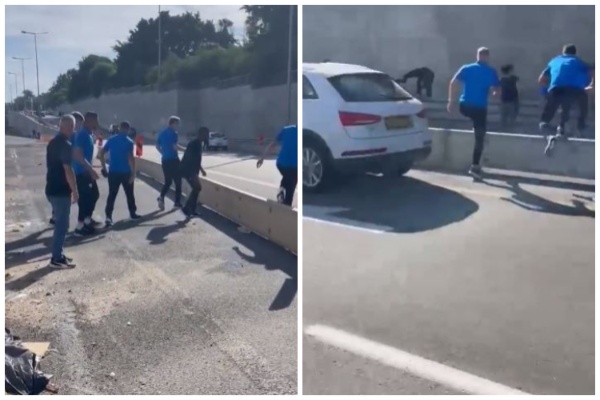 Siç shihet dhe nga pamjet e publikuara në rrjete sociale, futbollistët shihen teksa largohen me shpejtësi nga autobusi për të kaluar në anën tjetër të autostradës.