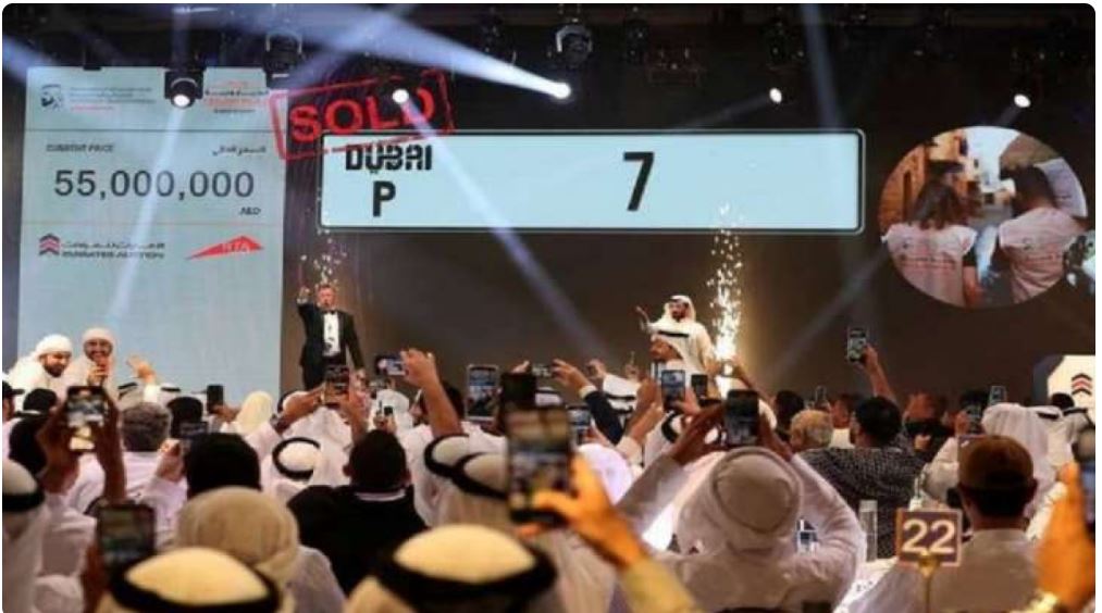 Një targë e veturave me shifrat “P7” në ankandin “Most Notable Numbers” në Dubai është shitur për një shifër rekorde prej 13.7 milionë eurove (55 milionë dirhemë). Oferta filloi me 3.76 milionë euro (15 milionë dërhemë) të shtunën mbrëma dhe u rrit në mbi 7.52 milionë euro (30 milionë dërhemë) brenda sekondave.