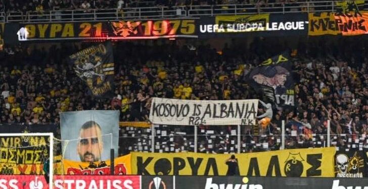 Banderola e shpalosur nga tifozët e AEK-ut të Athinës në ndeshjen ndaj Ajaksit, ku shkruhej: “Kosova është Shqipëri”, është konsideruar si tradhëti dhe thikë në zemër nga serbët dhe mediat e këtij vendi.