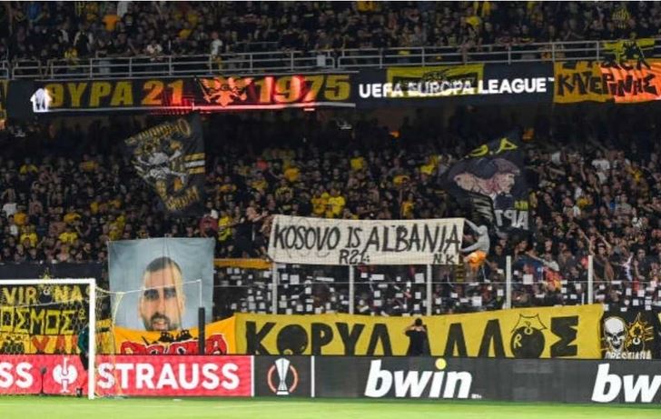 Banderola e shpalosur nga tifozët e AEK-ut të Athinës në ndeshjen ndaj Ajaksit, ku shkruhej: “Kosova është Shqipëri”, është konsideruar si tradhëti dhe thikë në zemër nga serbët dhe mediat e këtij vendi.