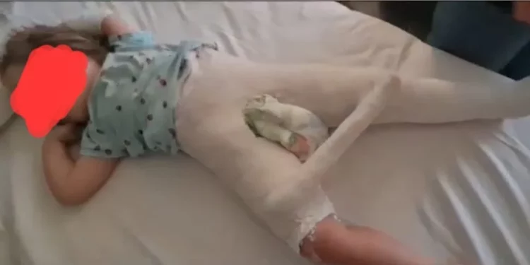 Siç shihet edhe nga pamjet e rënda, 3-vjeçarja ka përfunduar me të dyja këmbët në allçi.