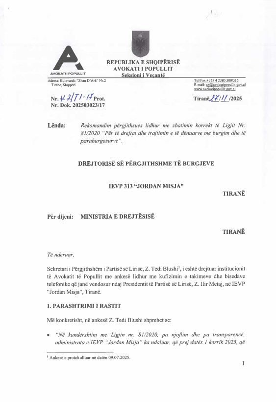 Pas marrjes së ankesës dhe shqyrtimit paraprak, institucioni i Avokatit të Popullit ka kryer hetim administrativ në lidhje me pretendimet e paraqitura.