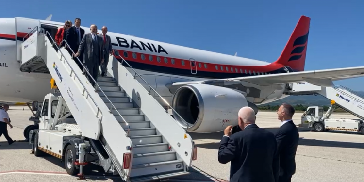Rama shihet teksa zbret nga avioni në Shkup, ku dhe është pritur nga zv. kryeministri i Maqedonisë së Veriut, Artan Grubi.