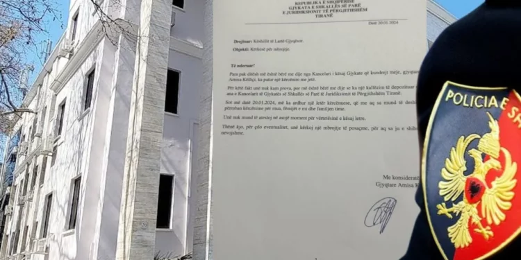 “Të nderuar! Para pak ditësh më është bërë me dije nga Kancelari i kësaj Gjykate që kundrejt meje, gjyqtares Arnsa Këlliçi, ka patur një kërcënim me jetë. Për këtë fakt unë nuk kam prova, por më është bërë me dije se ka një kallëzim të depozituar nga ana e Kancelarit të Gjykatës së Shkallës së Parë të Juridiksionit të Përgjithshëm Tiranë. Sot më datë 20.01.2024, më ka ardhur një letër kërcënuese, që me aq sa mund të deshifroj përmban kërcënime për mua, fëmijët e mi dhe familjen time. Unë nuk mund të atestoj në asnjë moment për vërtetësinë e kësaj letre. Thënë kjo, për çdo eventualitet, unë kërkoj një mbrojtje të posaçme, për aq sa ju e shihni të nevojshme“, thuhet në letrën e gjyqtares.