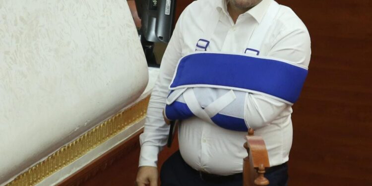 Deputeti i opozitës Saimir Korreshi është shfaqur ditën e sotme në Kuvend me krahun e fashuar dhe të lidhur.