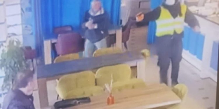 Autori i maskuar me jelek fosforeshent, kokore dhe maskë anti-covid ka hyrë nga pjesa e pasme e lokalit, për të kryer sulmin.