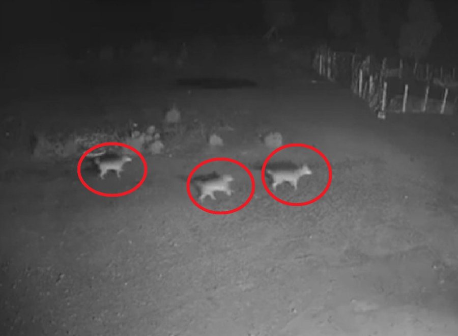 Ndërsa pamjet nga kamerat e sigurive të banesave, shfaqin disa ujq që afrohen pranë banesave dhe sulmojnë bagëtitë që ndodheshin brenda rrethimit, duke i tërhequr në brendësi të pyllit në pak minuta.