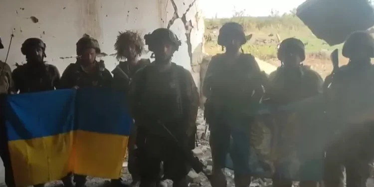 Presidenti Zelensky postoi video të trupave që mbanin një flamur ukrainas në fshat dhe ministrja e Mbrojtjes Hanna Maliar tha se ata tani “po vazhdonin të pastronin vendbanimin”.