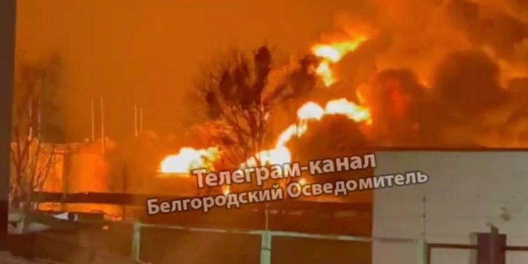 Një shpërthim i madh ka ndodhur në një fabrikë në rajonin e Belgorodit në Rusi. Pamjet e publikuara në rrjetet sociale tregojnë zjarrin që ngrihet deri në 50 metra lartësi, pasi dyshohet se shpërtheu një depozitë nafte.