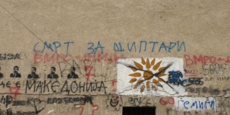 Mbishkrime të tilla janë shkruar në objektet banesore drejt stacionit të autobusëve, konkretisht tek banesat kolektive në rrugën “Mara Ugrinova”.