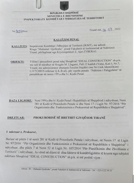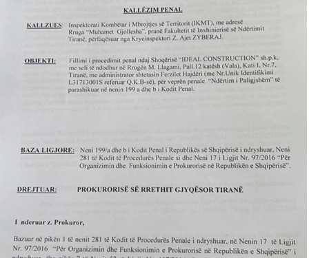 Diçitura: IKMT kallëzoi “Ideal Construction” për katet pa leje te “Syri i Tiranës”
