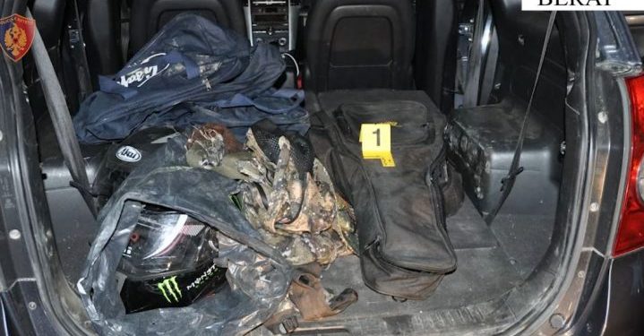 Uniformat blu kanë sekuestruar 2 armë zjarri me silenciatorë, municion luftarak, motomjet, skafandra, mjet prerës (thikë), veshje kamuflazhi, radio marrëse-dhënëse, dylbi dhe sende të tjera që do të përdoreshin për realizimin e vrasjes së një shtetasi.